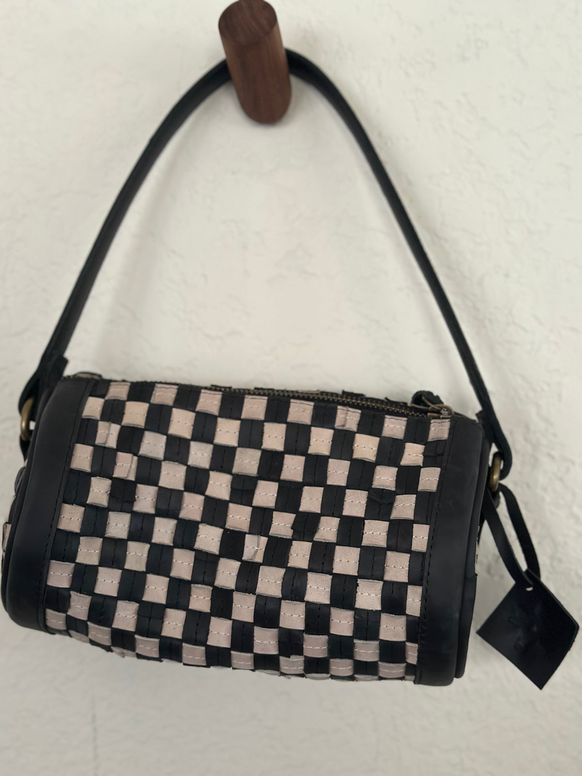 The Konso Barrel Bag is handwoven from upcycled Ethiopian leather, featuring a striking checker weave that brings depth, movement, and texture to a timeless barrel silhouette. Designed to stand out without trying too hard, this bag balances artisanal detail with an effortlessly wearable form.
