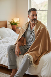 Finished with signature twisted fringes, this versatile piece blurs the line between home essential and wearable comfort. Thoughtfully crafted, endlessly useful, and beautiful in every setting — Asella is made to be lived with, not just styled.